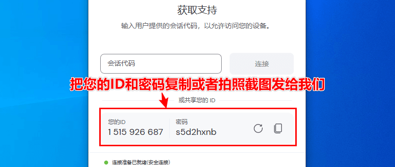 步骤 2:下载完成,打开软件,将您的ID和密码发给我们!示例如下图: