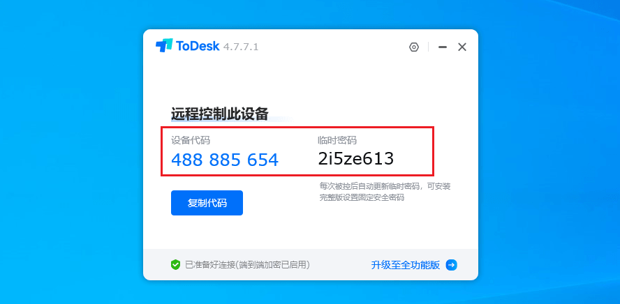 步骤 2:下载完成后,打开软件,将设备代码和临时密码发给我们!示例如下图: